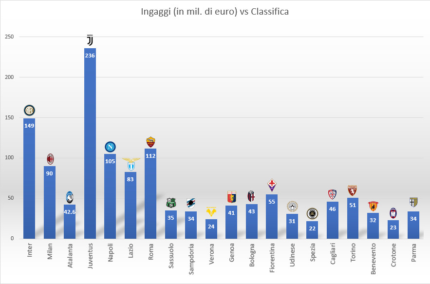 Nota d’obbligo: ovviamente tutte queste considerazioni prescindono dalle fonti di guadagno alternative ed extra campionato che ogni squadra ha al di fuori della mera posizione in classifica (diritti TV, merchandising, vendita magliette, ecc…).