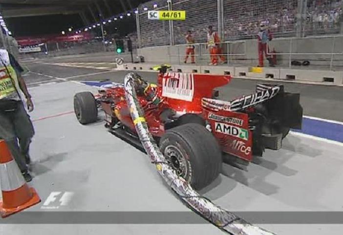 Ma, mentre dopo questo GP Hamilton e Massa si alternano sul podio, Raikkonen con un ritiro ed altre tre gare fuori dal podio e dalla zona punti si tira da solo fuori dalla corsa al titolo iridato. Massa ci mette ancora del suo a Singapore (nel primo GP della città asiatica) quando, in testa alla gara, decide di portarsi dietro la pompa di benzina con un meccanico durante una sosta ai box. Errore che gli costa non solo la prima posizione ma anche punti, difatti arriva solo 13o.